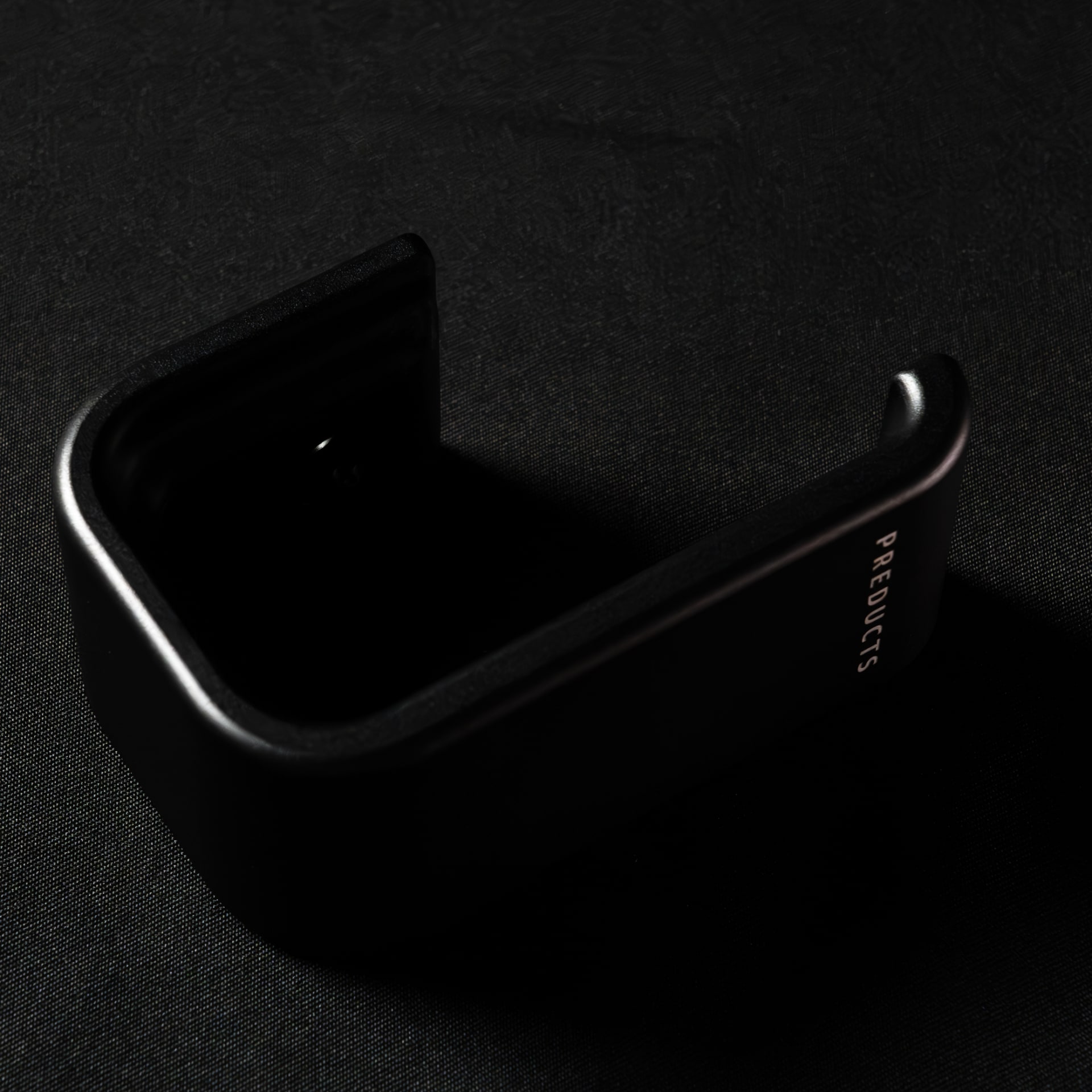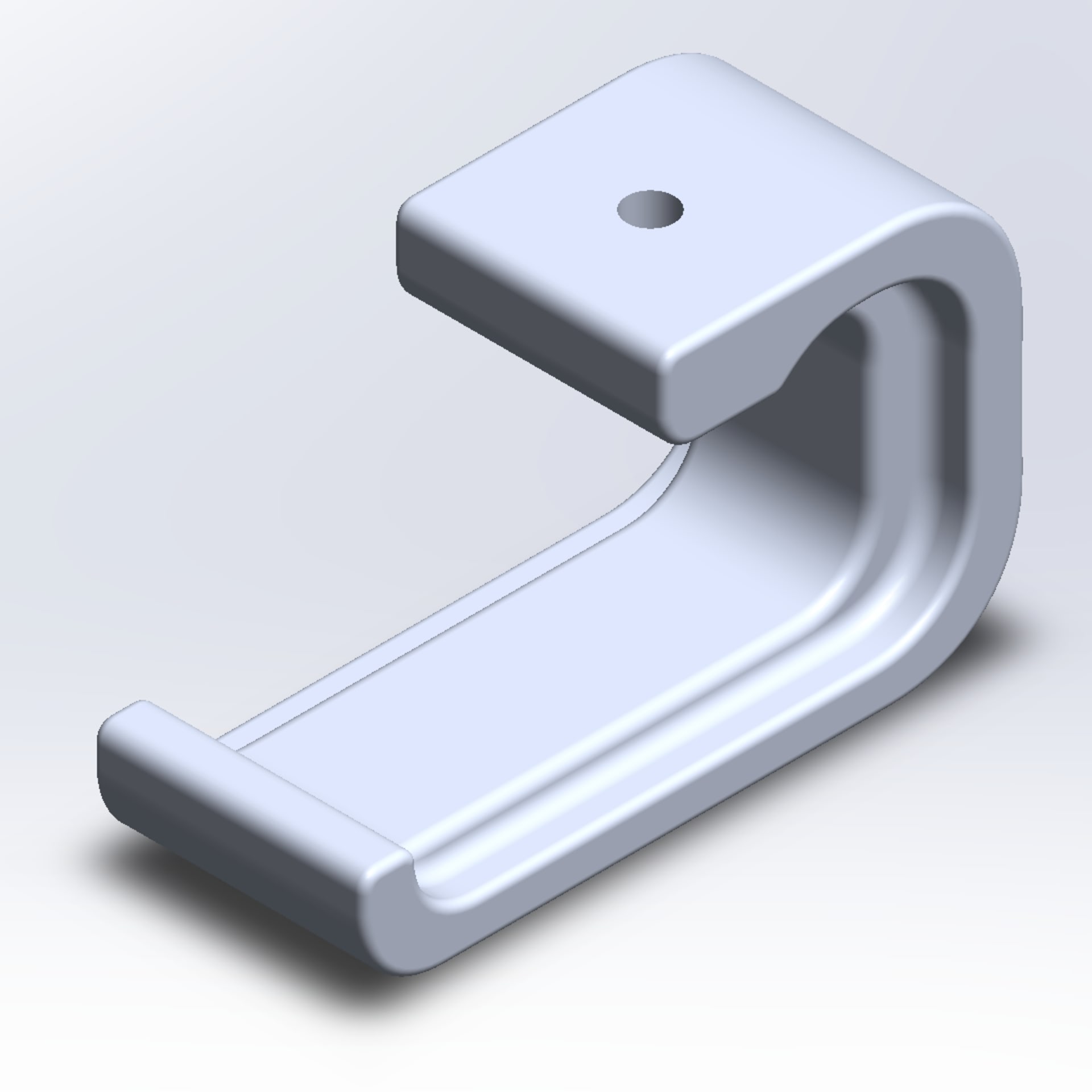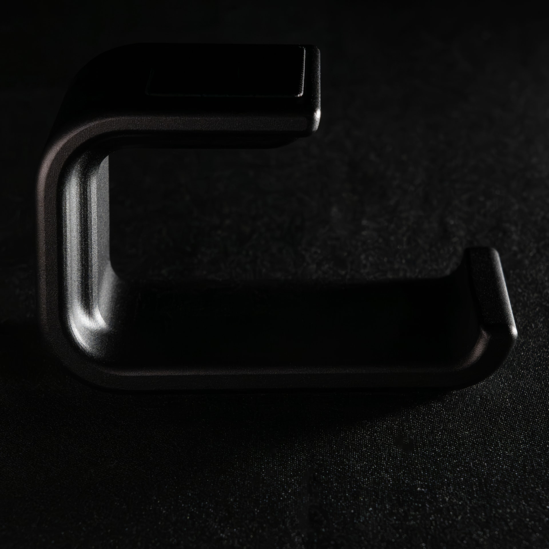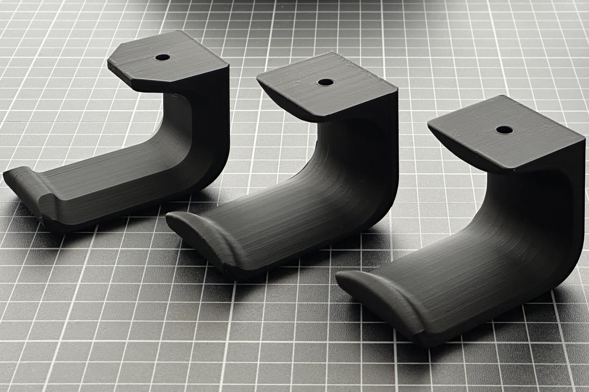 Headphone Hangerをちょうど90度回転したような向きになっており、引きで見ると類似点が感じられる造形だと思います。ただ、細かく見ていくと角のアールなどをよりシンプルに仕上げており、コストを抑えつつも機能を満たす造形になっています。