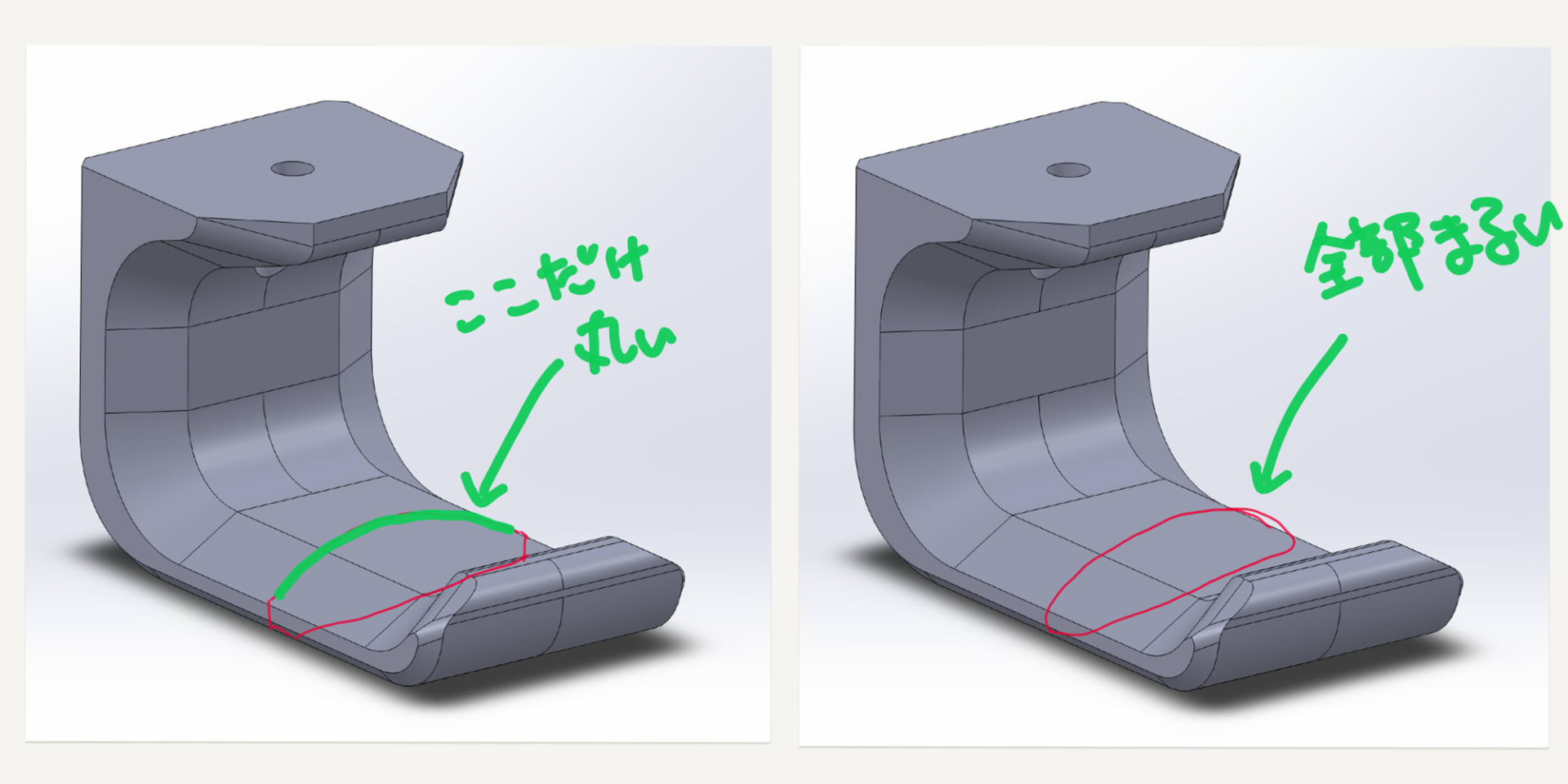 切削加工に伴う見直しの中で、特に大きく調整したのは「ヘッドフォンの“あたり”」でした。ヘッドフォンを吊り下げるという非常にシンプルな機能だからこそ、単に吊り下げられる"だけ”では、わざわざモジュールとして展開する必要性は薄れてしまいます。