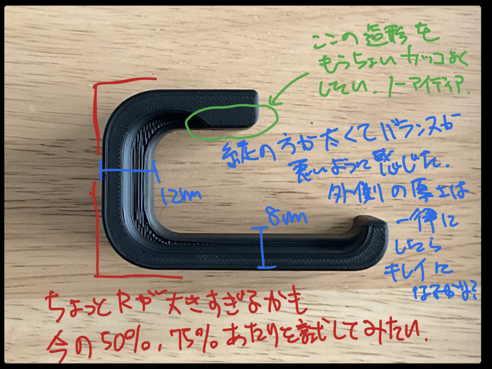 その上で、「ヘッドフォンを吊り下げる」という機能を十二分に満たす形状へと調整を重ねていきます。