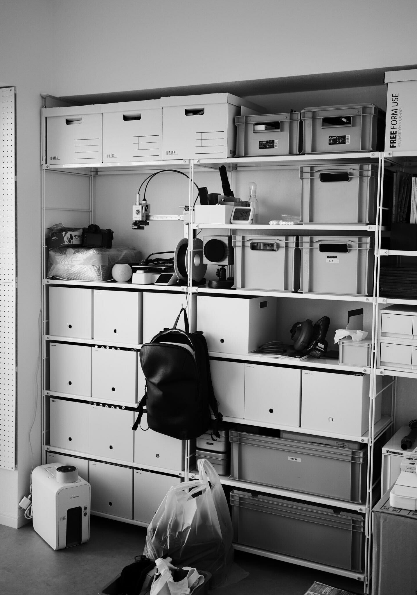 オフィス移転まだでした/引越に向けて収納の話/オフィスの収納を支えるAlutecのユニバーサルボックス/スタッキングできるモジュール式/雑に扱える、頑丈なボックス/空間のムードを作る什器としての役割/安藤宅の壁面収納/小山宅の収納家具/過去2度のリノベは作り付け収納を活用してきた/無印良品の収納ケースごと引越する/無印のモジュール的考え方/PREDUCTSの収納も仕組み化を頑張っている/Drawer Three、System Trayが採用されるわけ/収納はものの住所を作ること/住所不定の箱が生まれる/収納にラベルを付けるか・付けないか/収納家具は雰囲気を生み出す/ものの無いクリーンなデスクと、DASHBOARDなどが色々ついたデスク/IKEAのワゴン