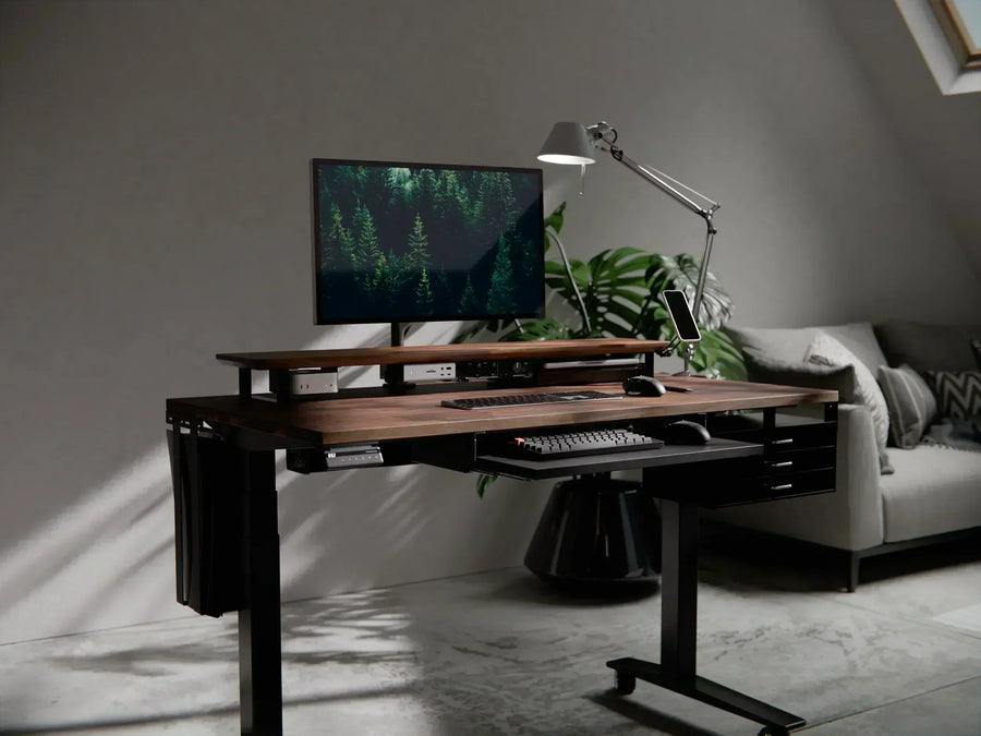 この天板は、FlexiSpotの電動昇降脚・E7H に合わせて開発されました。