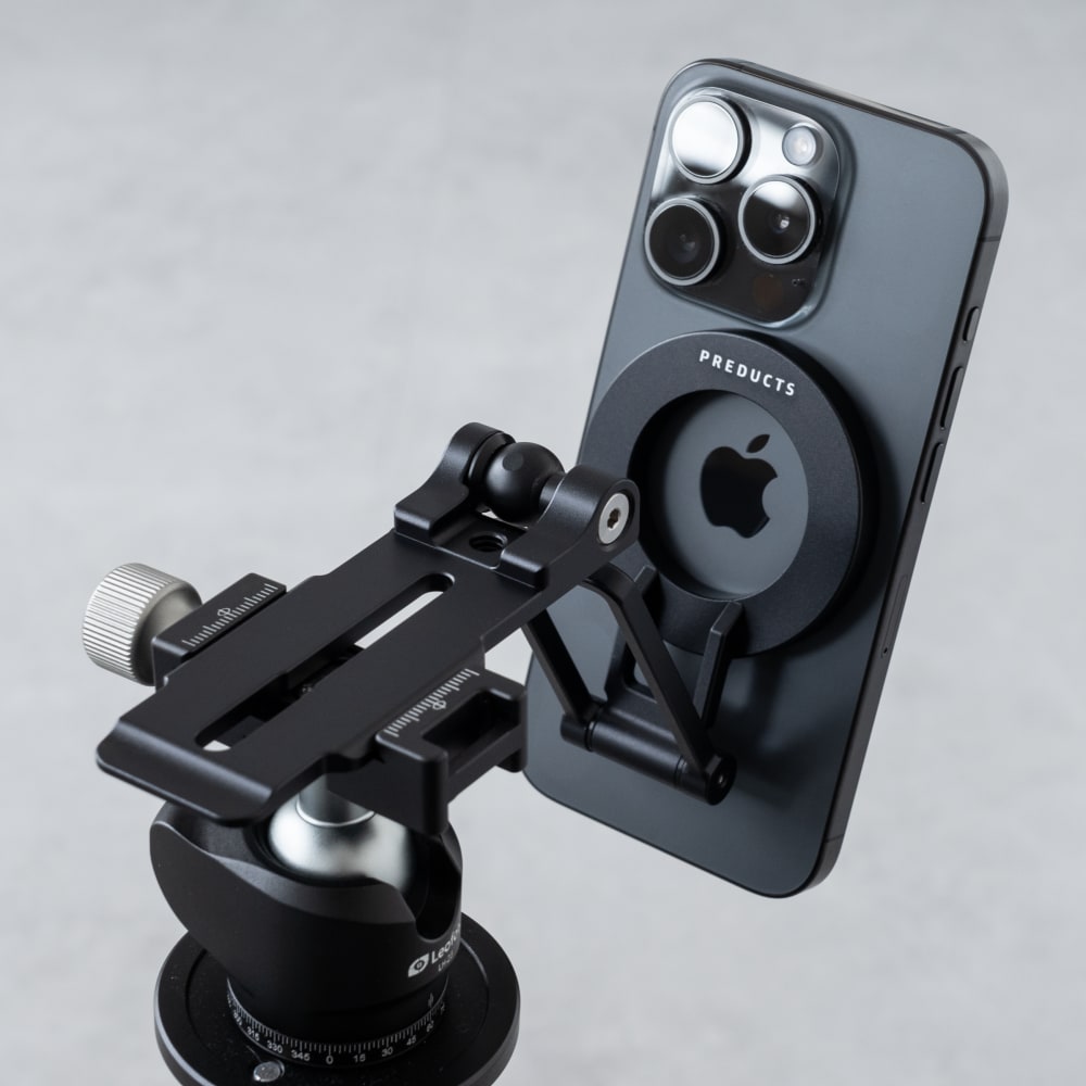 Magnet Gadget Armのプレートはカメラ等の機材で使われる規格「アルカスイス」にも対応しています。そのためPREDUCTSのプロダクトに限らず、三脚などに設置してご利用いただくこともできます。
