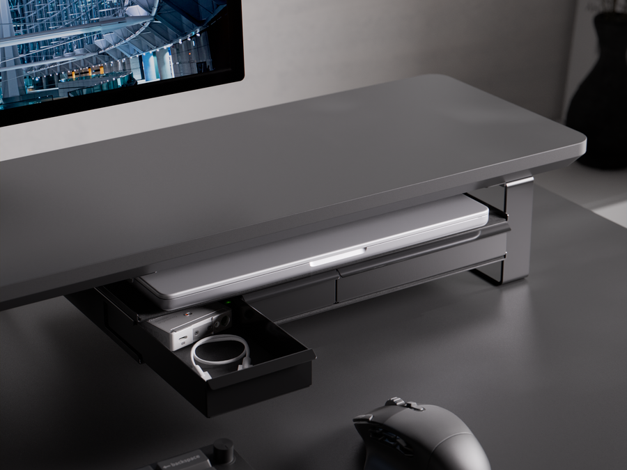 System Tray for DASHBOARD専用設計の引き出しモジュールです。SとMの2サイズ展開で、1つのトレーにSサイズを最大4個、Mサイズを最大2個設置できます。