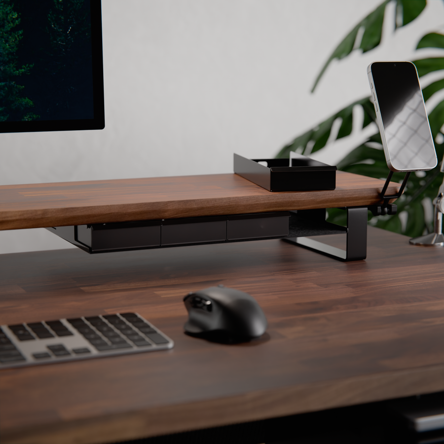 引き出し内部にはトレイと同様フェルトを貼り付け。ガジェットなどや文具などの金属との擦れや音も低減してくれます。
