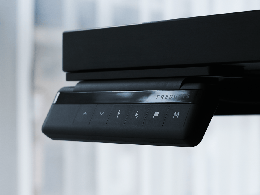 Desk Controllerは6つのボタンを備えます。高さを記憶する3つのプリセットボタンをご活用ください。