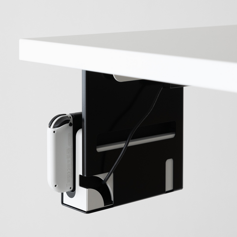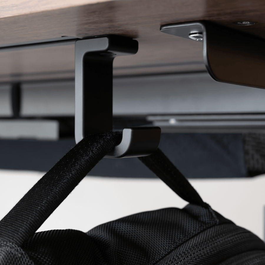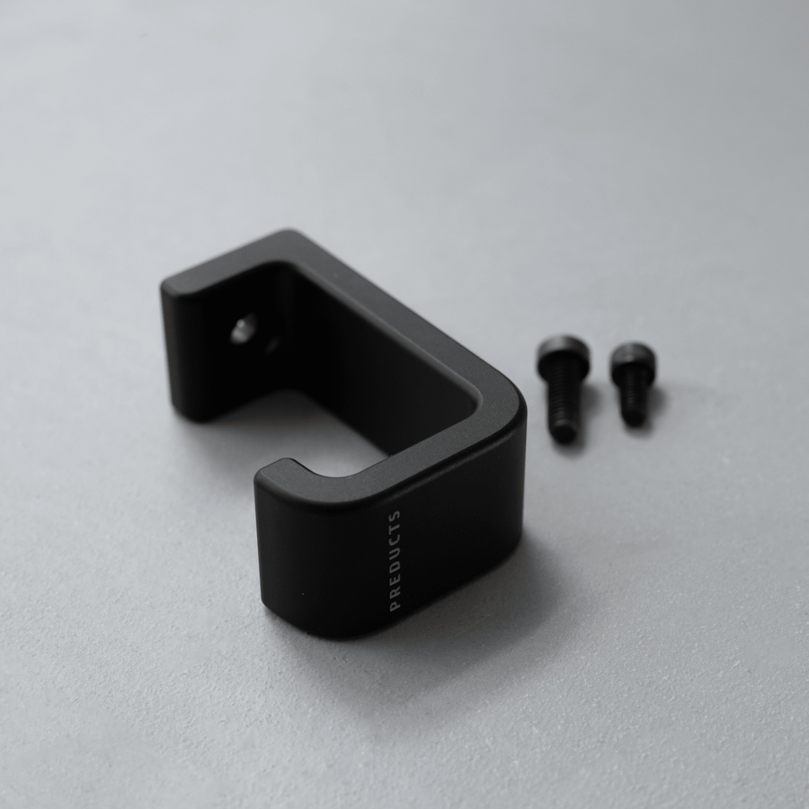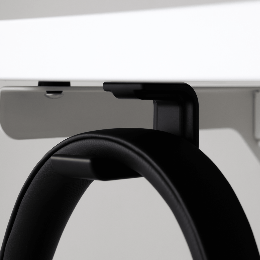 バンド部分に沿うようアーム部分を小さくアール形状にし、角が当たらないように仕上げたヘッドフォン・ハンガー。