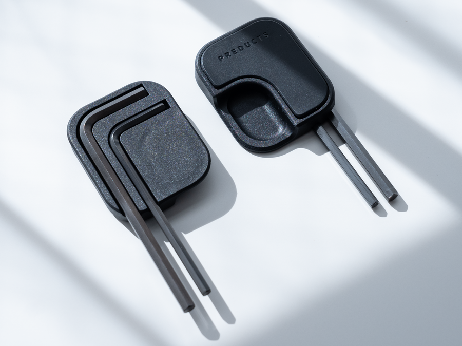 PREDUCTS DESKをモジュールでカスタマイズするための工具を収納するツール。マグネットでデスクの脚部などのスチール部分に取り付けておくことができます。