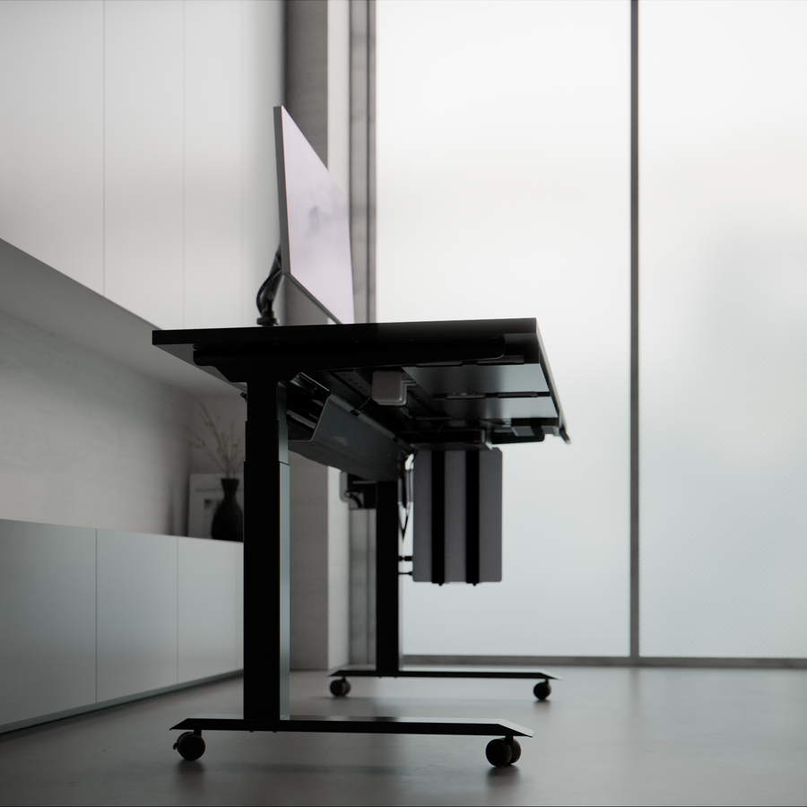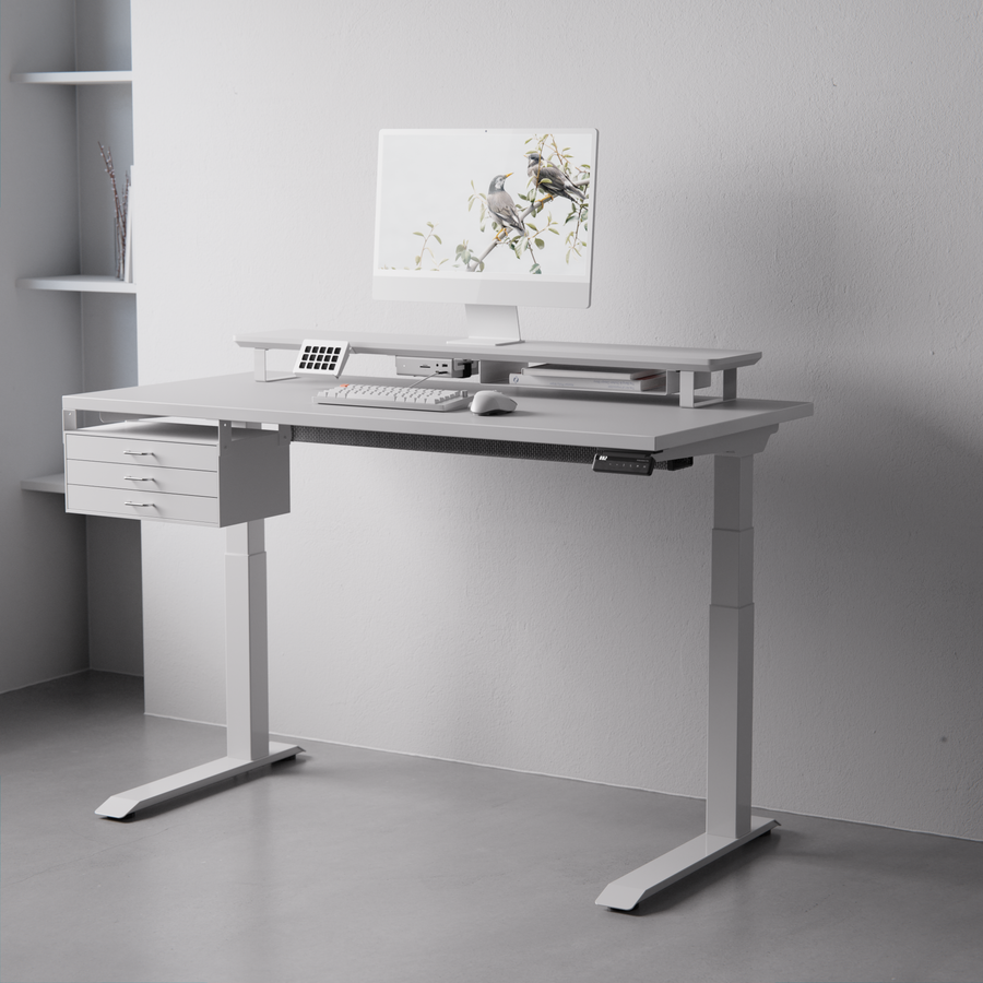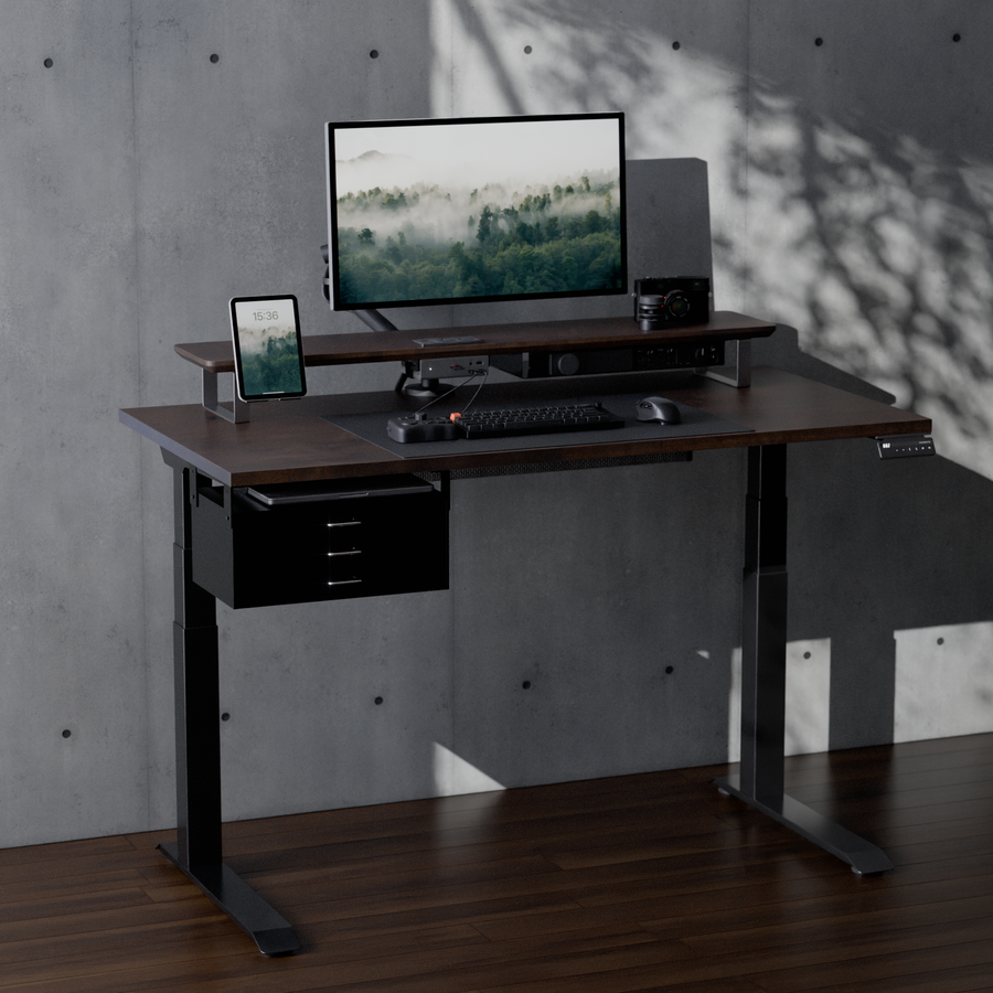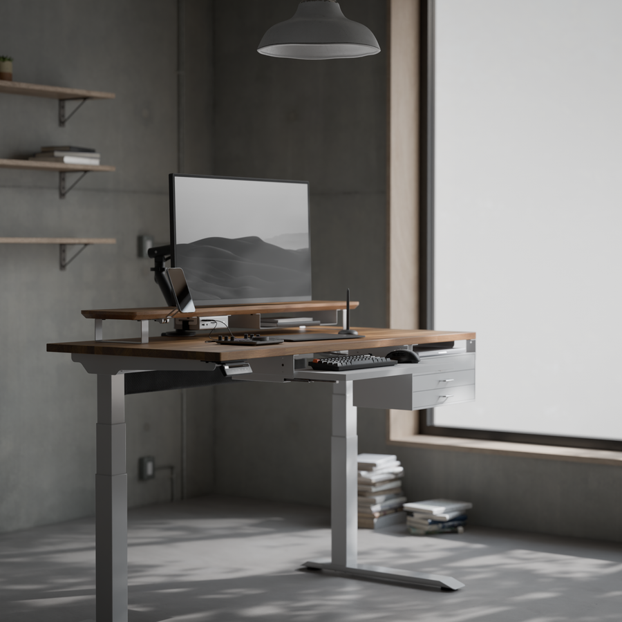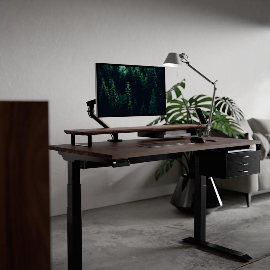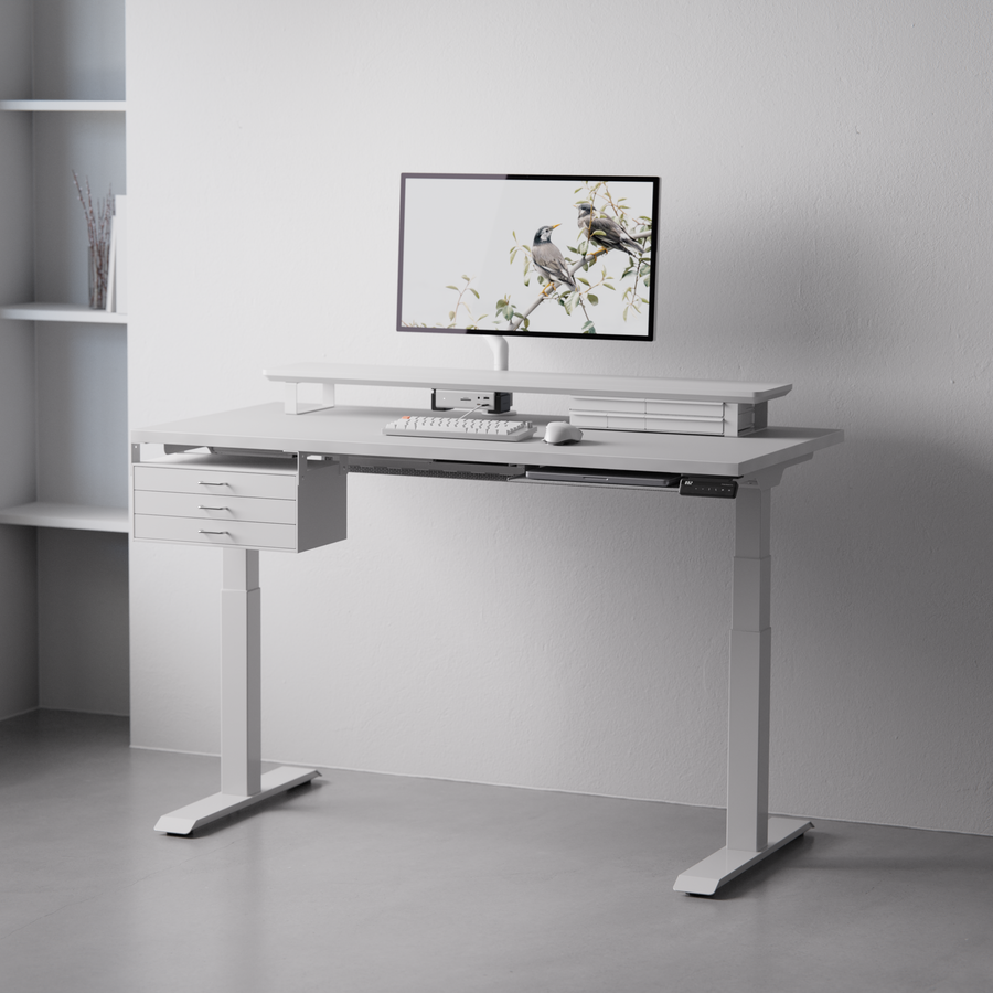 支柱の高さは、DASHBOARDの高さに合わせて設計しました。シェルフがアームの可動域を妨げることないため、アーム本来の可動域を活かしてモニターを自由な位置に配置できます。(Steel Leg 10cm / 7.5cm双方に対応)
