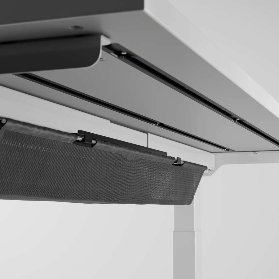 取り付けに2本のレールを必要とするMesh Cable Holder。FlexiSpot昇降脚のフレーム部分に固定することで、空いたレールの有効活用ができます。
